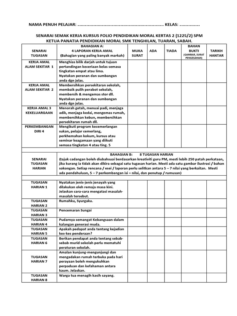 Senarai Semak Kerja Kursus Folio Pendidikan Moral Pdf